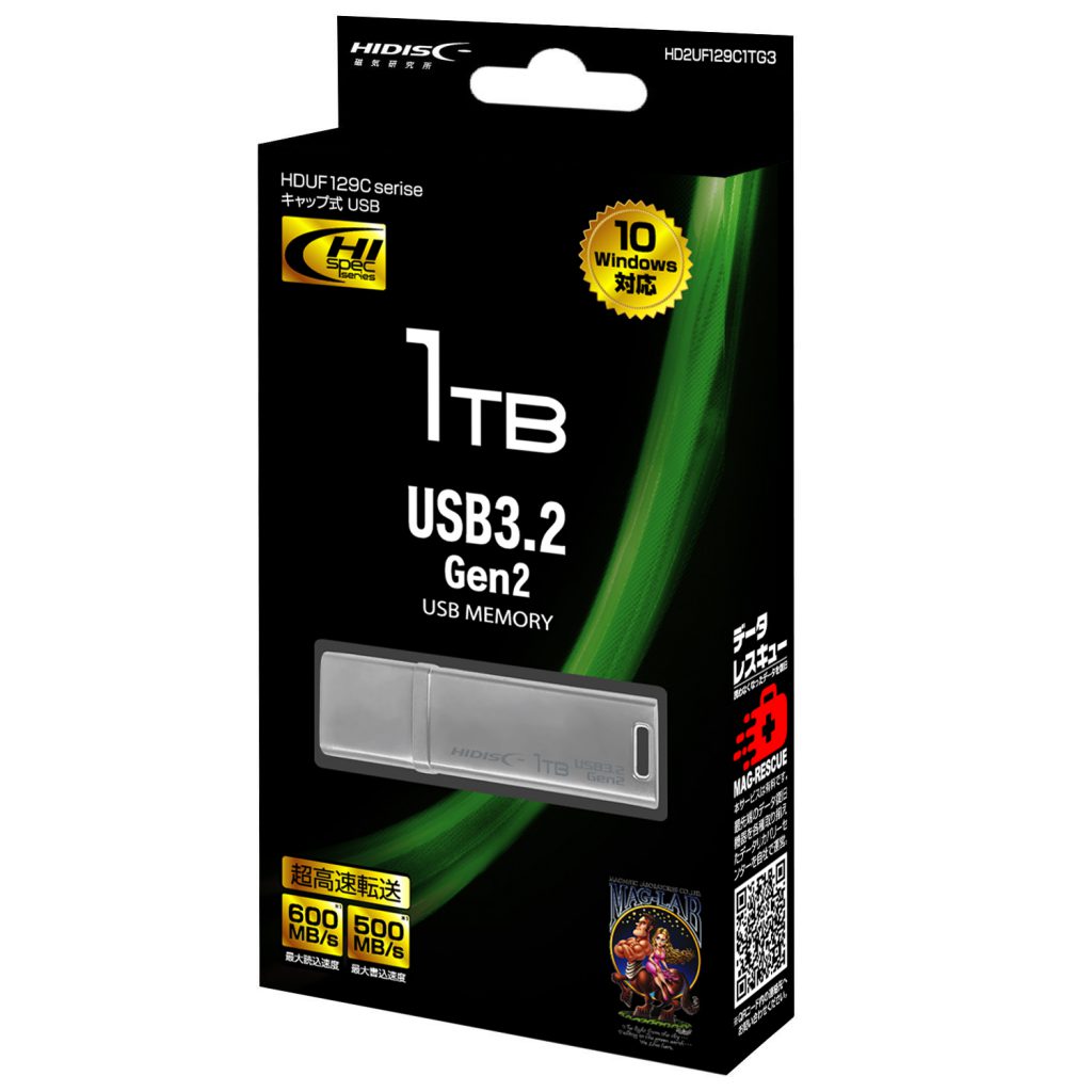 | 商品名 | 高速転送 HIDISC USB 3.2 Gen2 フラッシュドライブ 1TB シルバー キャップ式 |