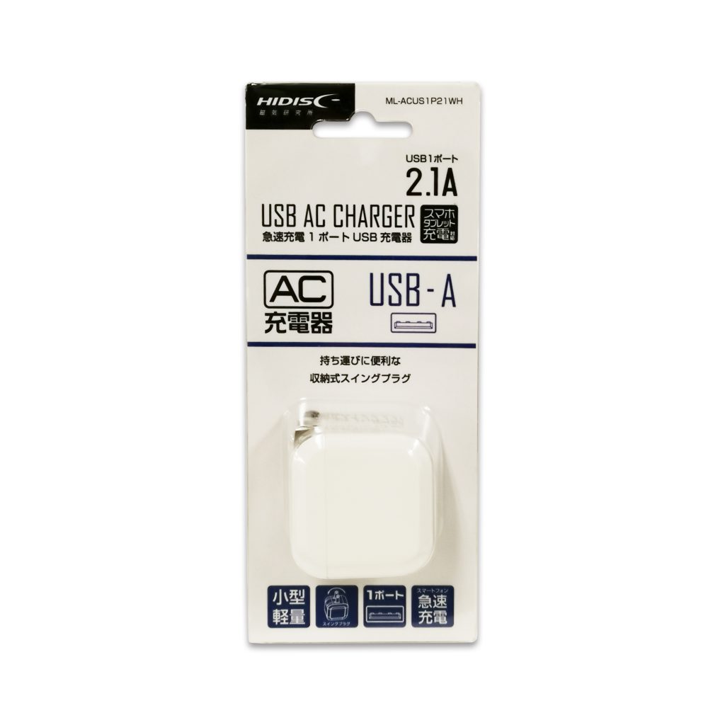 HIDISC AC 充電器 1ポート 2.1A ML-ACUS1P21WH