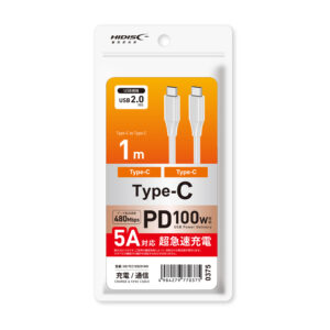 HIDISC USB Type-C to Type-C ケーブル 5A対応 1m ホワイト HD-TCC100201WH