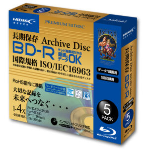 HIDISC 長期保存(推定30年) BD-R 録画用 130分 4倍速対応 5枚 5mmSlimケース入り ホワイト ワイドプリンタブル HDBR130YP5SCAR
