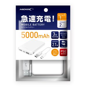 HIDISC OPP包装 Type-C入出力対応モバイルバッテリー5000mAh