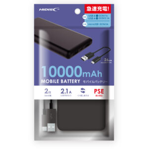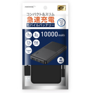 HIDISC コンパクトスリム急速充電 モバイルバッテリー 10000mAh ブラック HD-MB10GFBK-PP