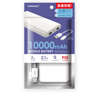 HIDISC コンパクトスリム急速充電 モバイルバッテリー 10000mAh ホワイト HD-MB10000TAWH-PP