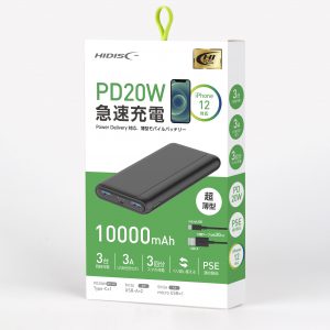 HIDISC PD20W, QC3.0対応 10000mAhモバイルバッテリーブラック HD-PD20W10000BTBK