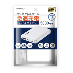 HIDISC コンパクトスリム急速充電 モバイルバッテリー 5000mAh ホワイト HD-MB5000TAWH-PP