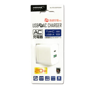 HIDISC USB PD・QC対応 Type-C/A 20W AC充電器 ML-PDUS2P20WH