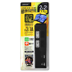 USB 2ポート付 節電タップ(独立スイッチ付) 2個口+2USBポート ブラック