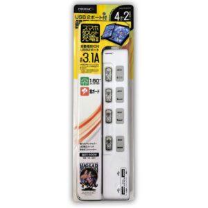 USB 2ポート付 節電タップ(独立スイッチ付) 4個口+2USBポート