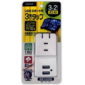<スマホタブレット充電対応>急速充電3.4A USB2ポート付3個口タップ