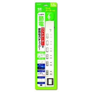 HIDISC ワットメーター付コンセント6個口 電源タップ HDTAC6WMWH
