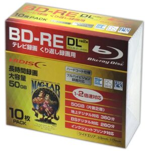 HIDISC BD-RE DL 1-2倍速対応 50GB くり返し録画用デジタル放送対応 インクジェットプリンタ対応10枚 スリムケース入り