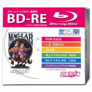 HIDISC BD-RE 2倍速 映像用デジタル放送対応 インクジェットプリンタ対応10枚 Pケース入り