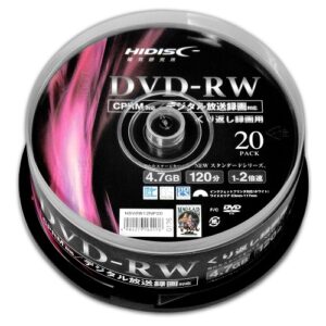 HIDISC DVD-RW くり返し録画用 CPRM対応 120分 1-2倍速対応 20枚 スピントルケース入り ホワイトワイドプリンタブル インクジェットプリンタ対応