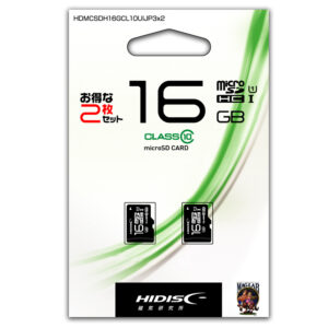2枚組 HIDISC microSDHCカード 16GB CLASS10 UHS-1対応“最大読込速度70MB/s”