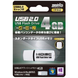 HIDISC USB 2.0 フラッシュドライブ 4GB 白 キャップ式