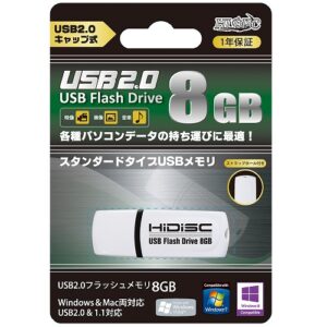 HIDISC USB 2.0 フラッシュドライブ 8GB 白 キャップ式