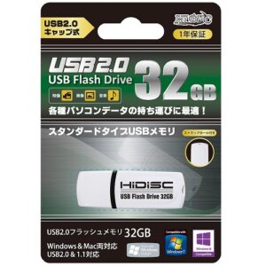 HIDISC USB 2.0 フラッシュドライブ 32GB 白 キャップ式