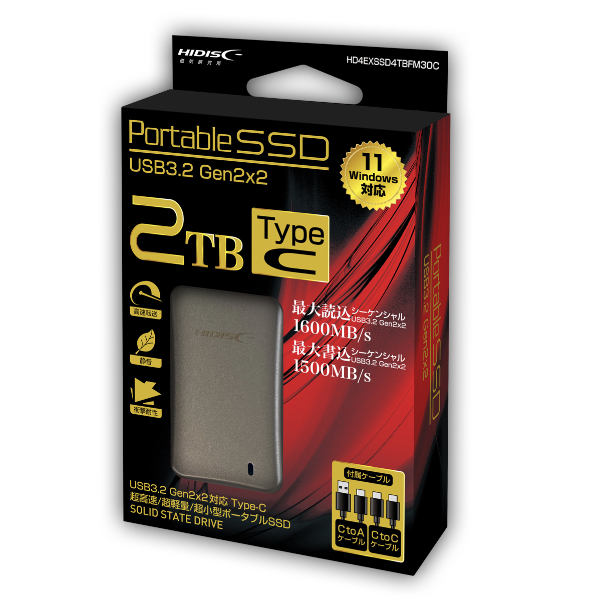| 商品名 | HIDISC USB3.2 Gen2x2 最大読込1600MB/s 最大書込1500MB/s ポータブルSSD 2TB |