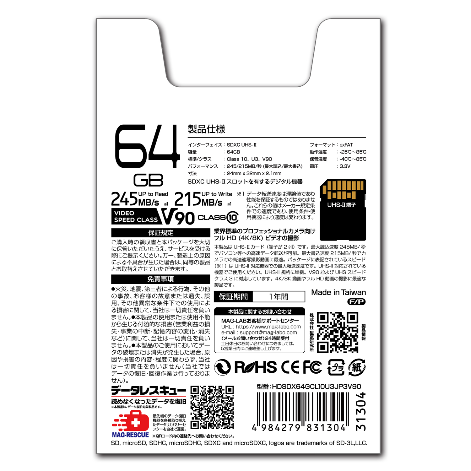 | 商品名 | HIDISC 超高速SDXCカード 64GB CLASS10 UHS-II, U3, V90対応 |