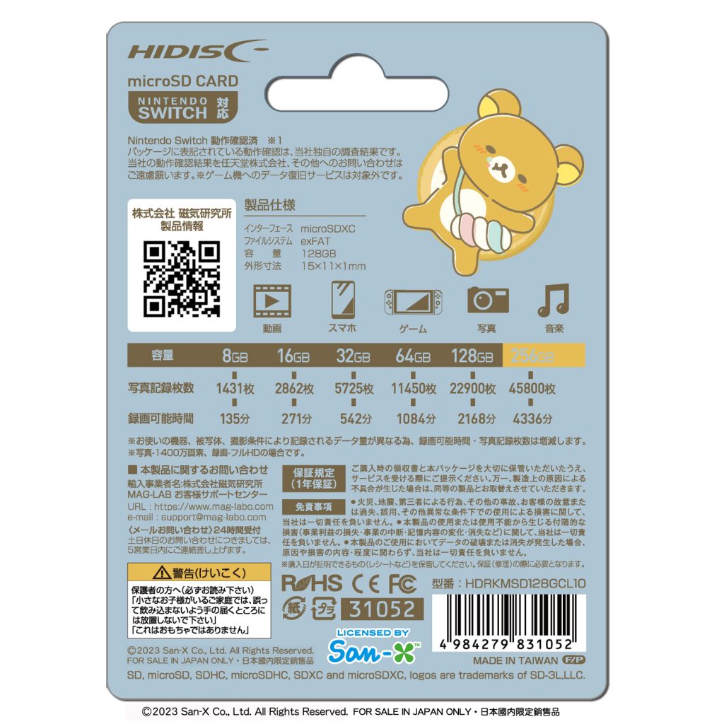 | 商品名 | HIDISC リラックマ microSDXCカード 128GB CLASS10 UHS-I 対応 SDアダプタ・ケース付 |
