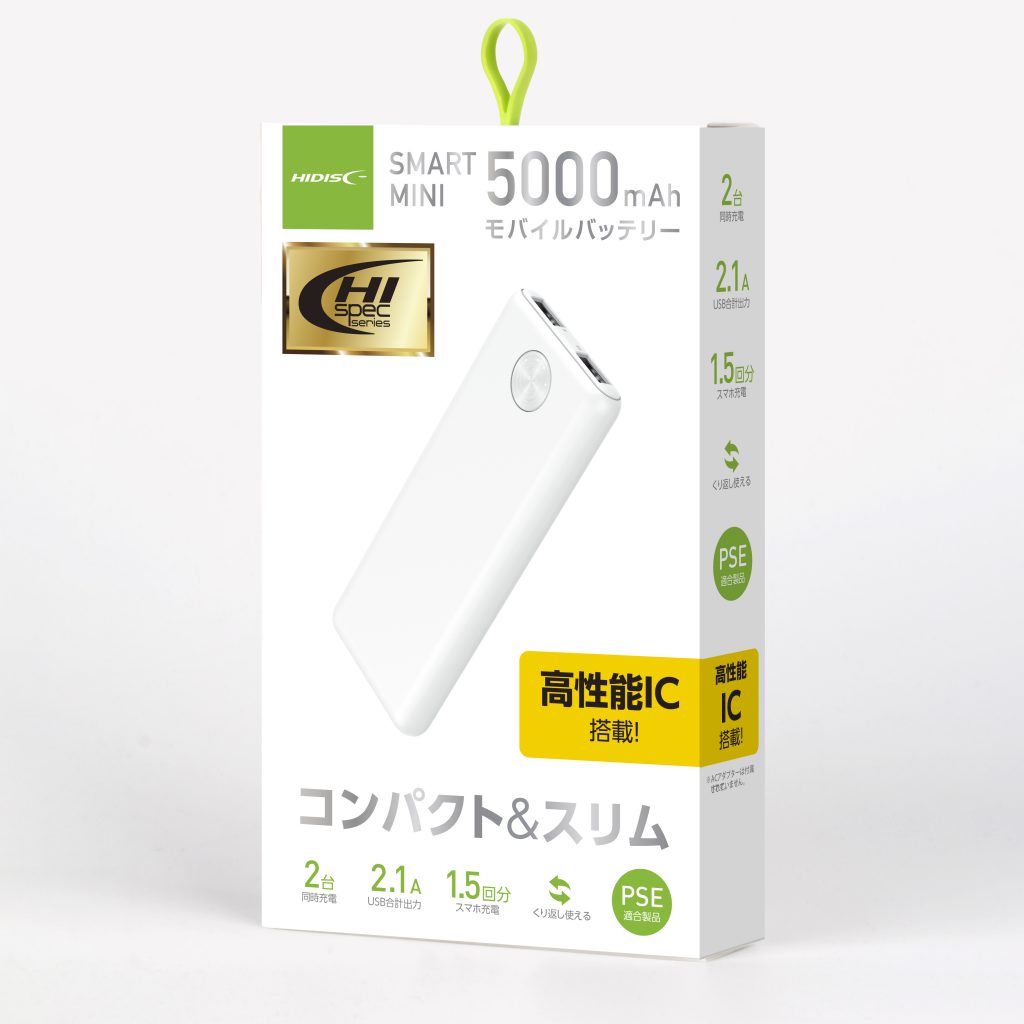 | 商品名 | HIDISC SMART MINI コンパクト 5000mAh 高耐圧IC搭載ハイパワーモバイルバッテリー |