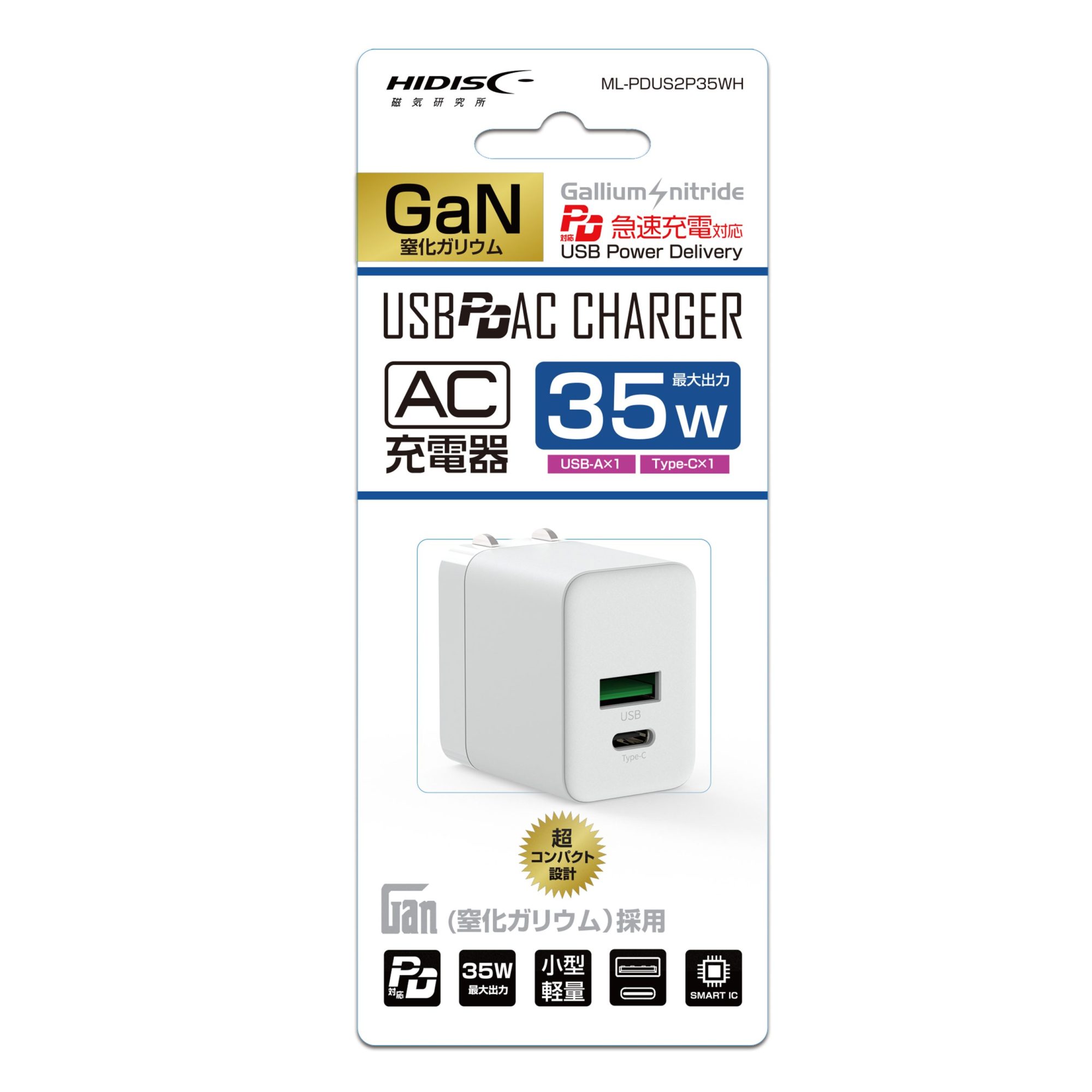 商品名 HIDISC Type-C/A 35W AC充電器 (窒化ガリウム対応)ML-PDUS2P35WH