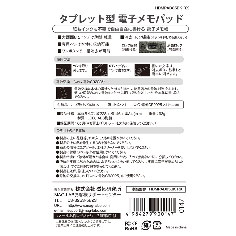 HIDISC 8.5インチ電子メモパッド HDMPAD85BK-RX